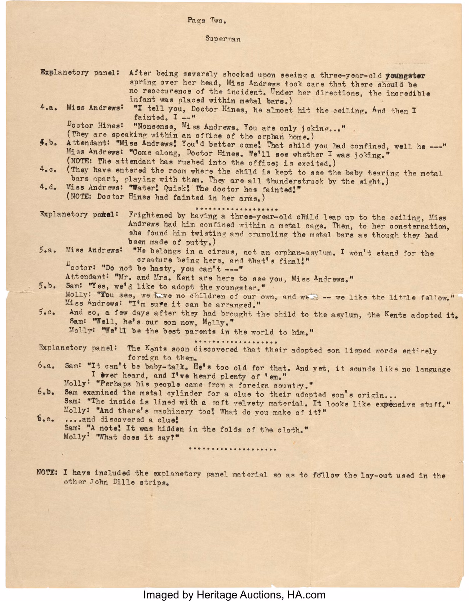 A bunch of Siegel’s script for these early SUPERMAN samples still exists as well, though these aged copies can in places be difficult to decipher.