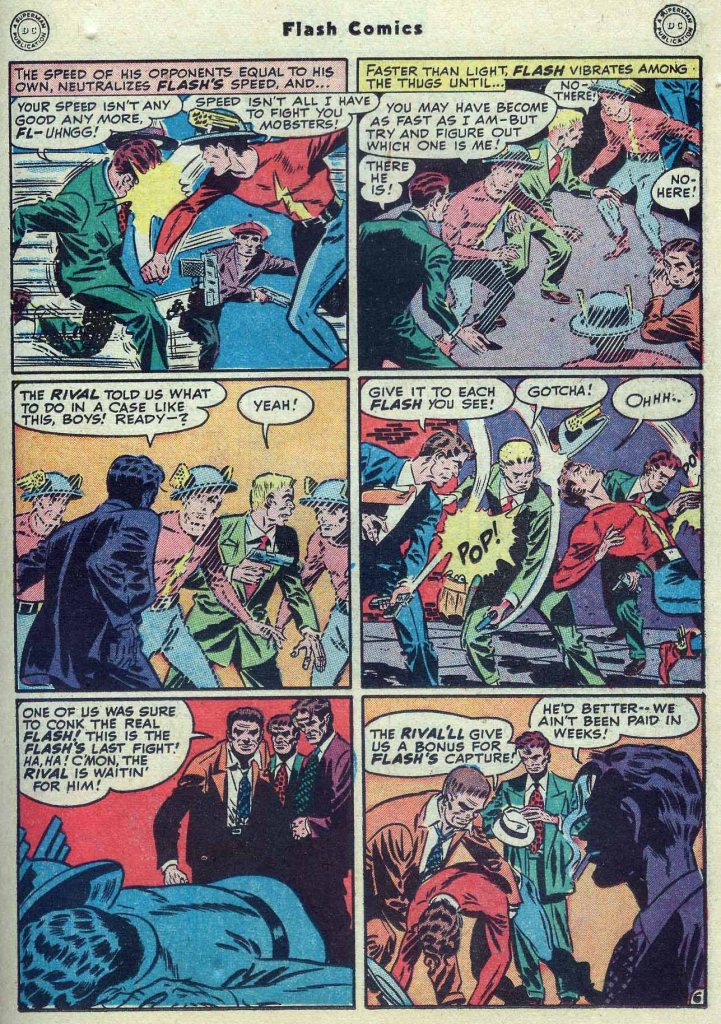 First time I saw this story I was shocked to see that The Rival was much older than the Flash. But at least he had powers unlike the False Flash [ All-Flash Quarterly#3 ( Winter 1941 ) Chapter IV: The Flash vs. the Flash! — henchman of Adam Adams ( who was after the Hard Water Formula from Dr. Manning ) ]. And yeah the art is good in this story.