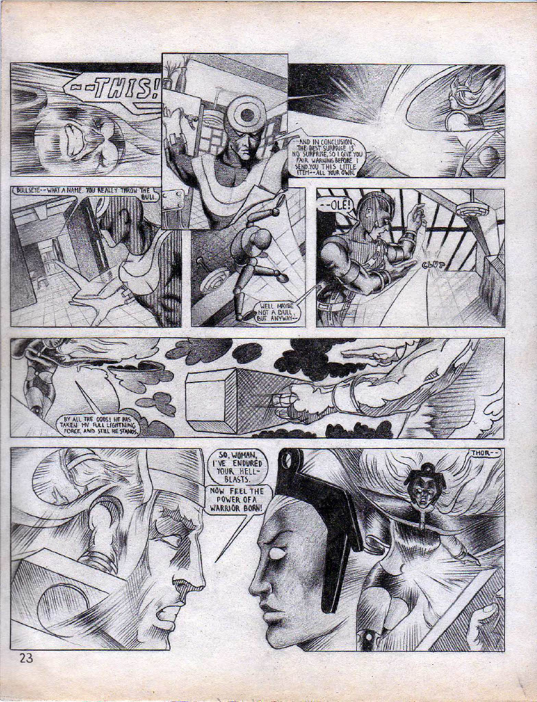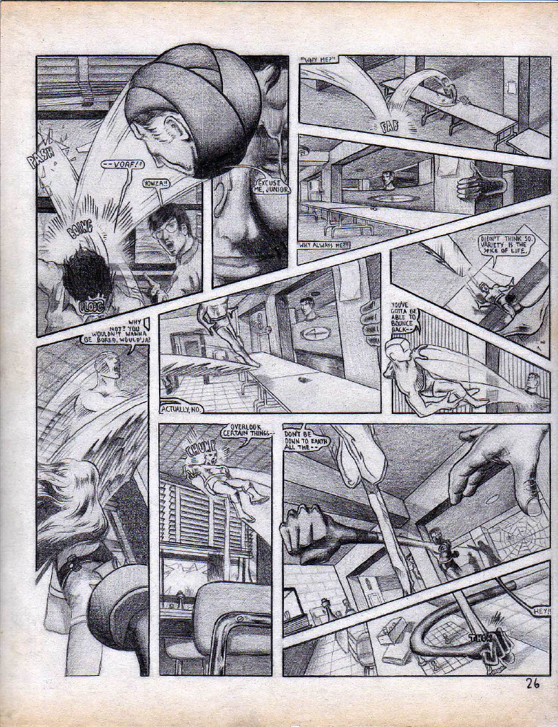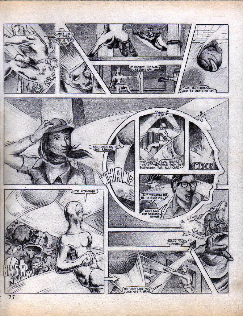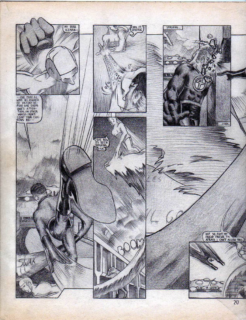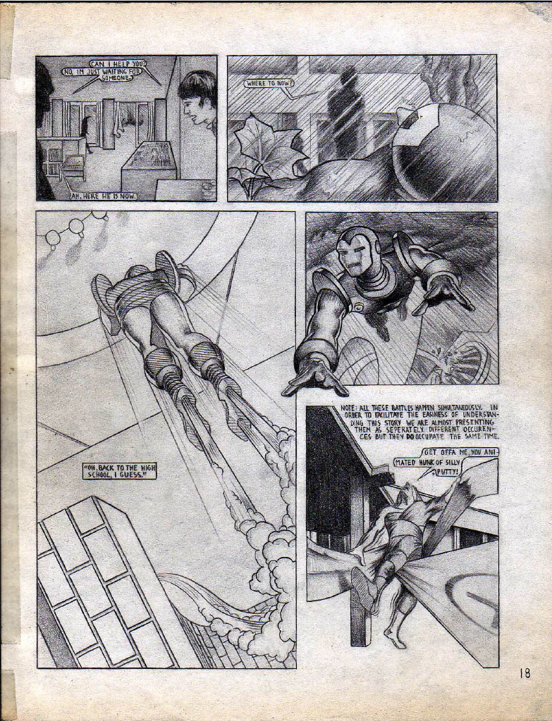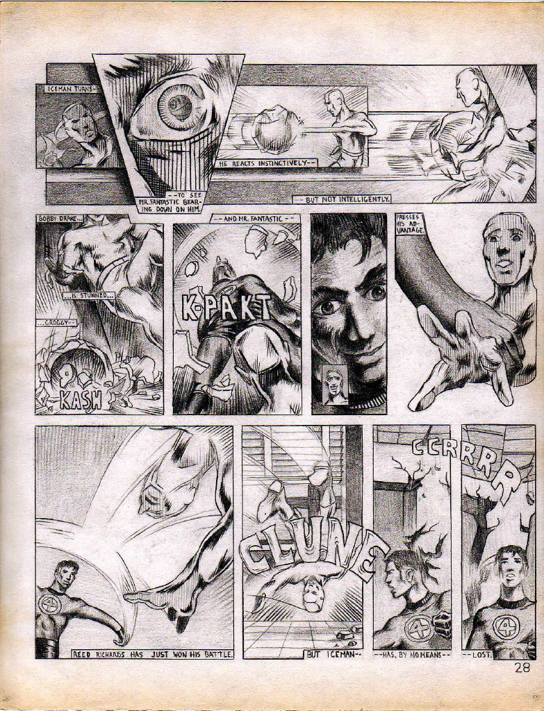 While it’s still not quite up to professional levels, you can see Scott in particular improve on his storytelling the further into teh book we go. That said, he’s still putting too many panels on each page, and his page flow is often haphazard and confusing. But he is making strides here.