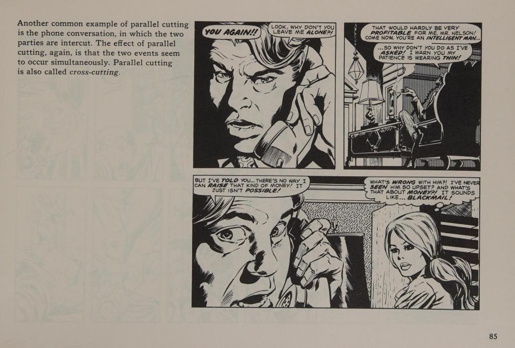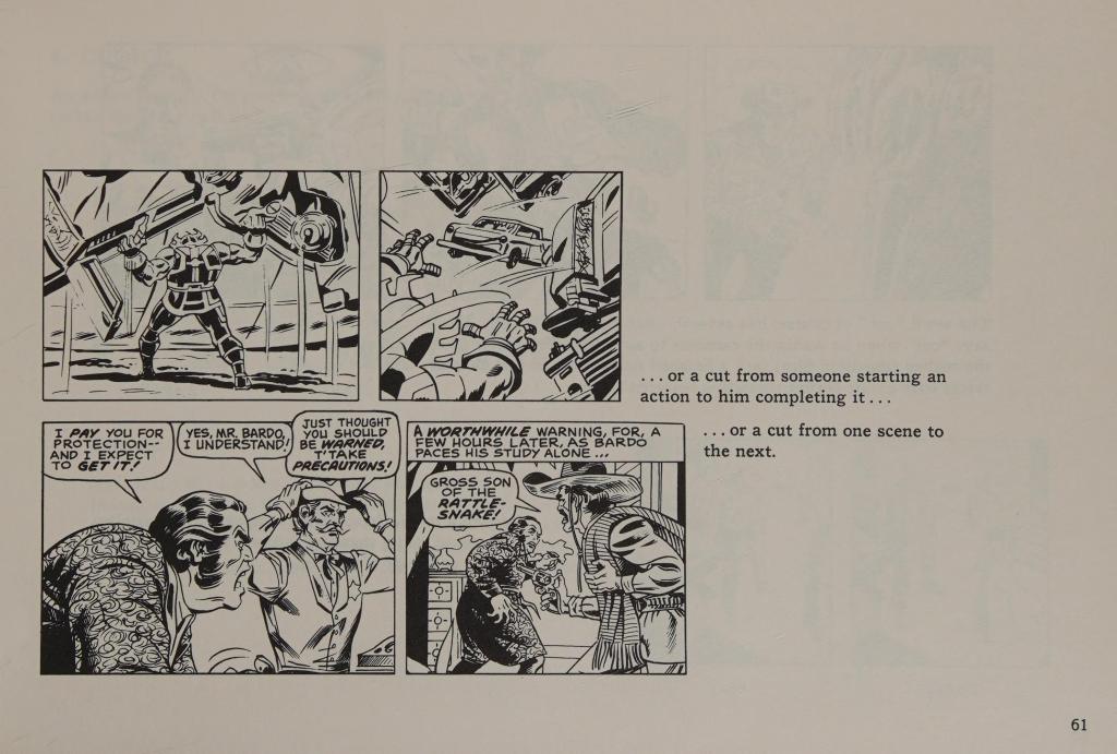 Catching up on these today. I remember the book on store shelves back in my bookstore days, tho’ I never did get around to scoring a copy. There was a big movement in both comics fandom (going through something of a quasi-intellectual renaissance at the time) & some film experts to view comics as “films on paper,” & this book was maybe it’s fullest expression. It was a notion I flirted with but quickly saw the flaws in once I’d begun writing comics; the two media really don’t line up all that comfortably, & thinking in terms of movies on paper guts comics of a lot of very useful narrative techniques, esp. if one becomes a purist. However, reading these pages now, movies aside this is really a very good basic primer of storytelling tools & techniques for comics artists, esp. those who are just learning. Plenty of good ideas & the fundamentals of how to apply them, & comprehensive enough they can pick & choose what they want or need but not doctrinaire enough to shy them away from following their own muse, an exposition of a semi-secret language most are forces to pick up only semi-consciously, seeing techniques they like but not quite understanding how they’re supposed to work or to what end. I could see the value in a reprint…