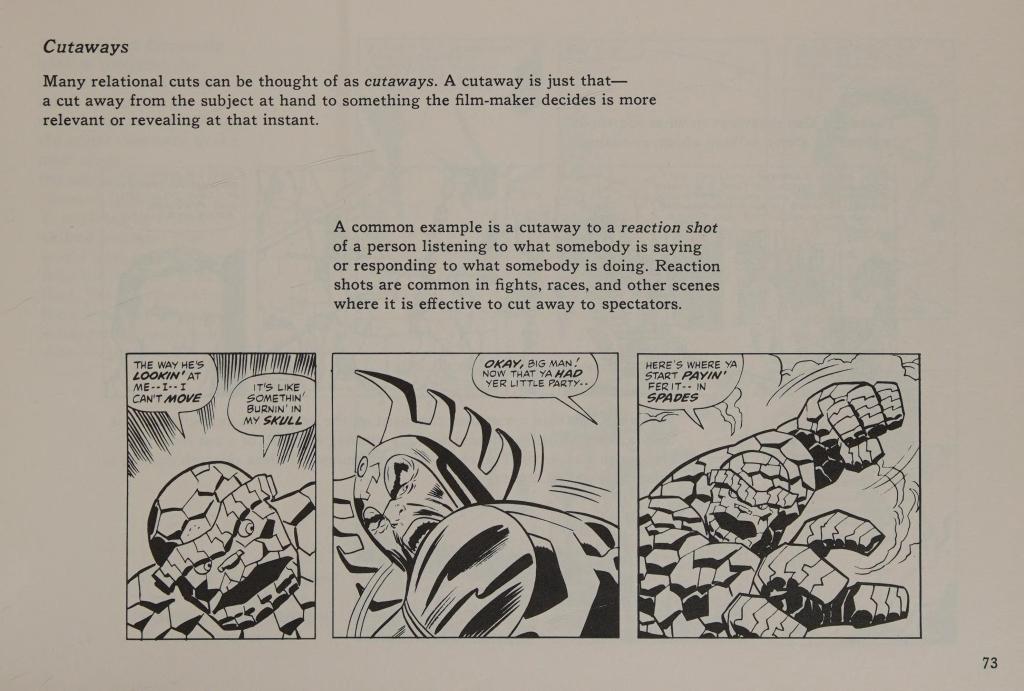 Continuing our look through MOVIEMAKING ILLUSTRATED: THE COMICBOOK FILMBOOK, a 1973 release that explained assorted filmmaking techniques and terminology by using visual examples culled from then-recent Marvel comics.