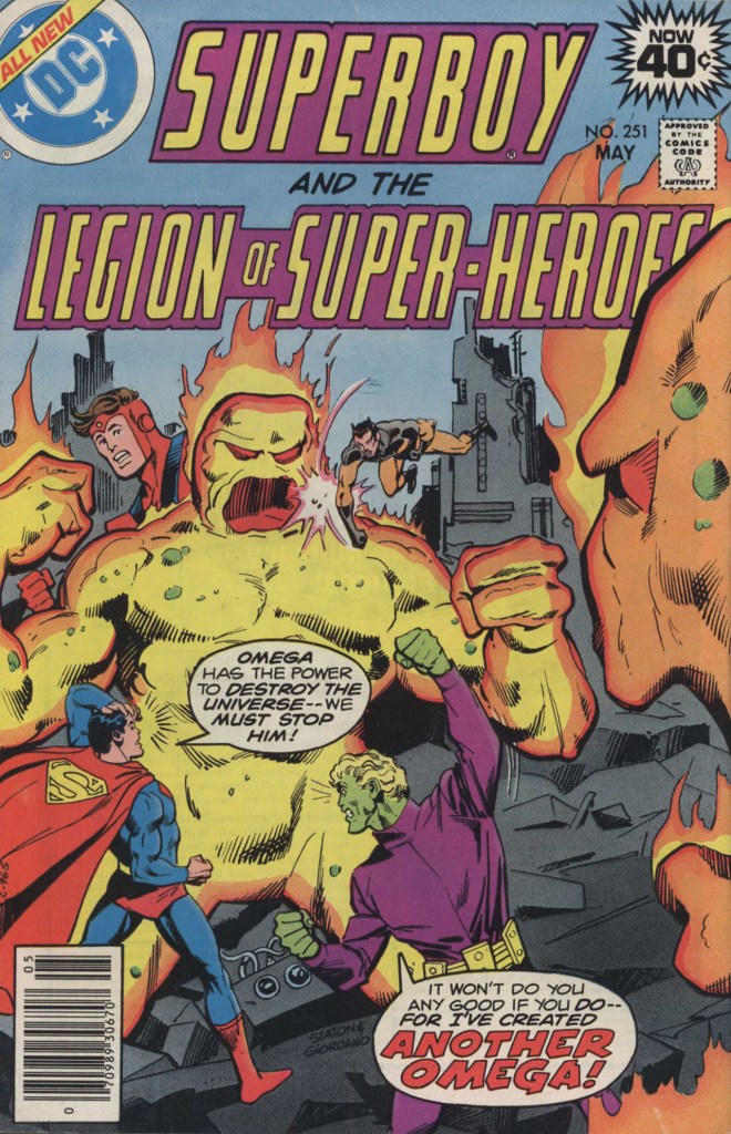 We pick up where we left off last time, with the Legion having discovered that the malefactor in their midst who framed Ultra Boy for murder is Brianiac 5, who has gone mad. What’s more, he’s created a titanically powerful entity, Omega, which is even now on a course to annihilate Earth. Despite the best efforts of the various Legionnaires, nothing that they come up with seems capable of stopping Omega or diverting his course, and the clock is ticking. Brainiac 5 wants to be giving control of the entire United Planets, or else he’ll let Omega destroy Earth. The Legionnaires try some more, which forms the backbone of a protracted action sequence at this point, but all of their mighty powers prove ineffective against Omega.