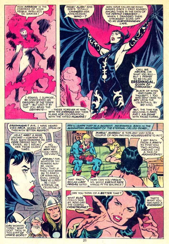 Kirby was still writing Captain America in 76 as if he had never encountered extraterrestrials. There was no way that Marvel wasn’t going to fold the Eternals and MM in… which I suppose they were itching to do while Kirby was still working on them.