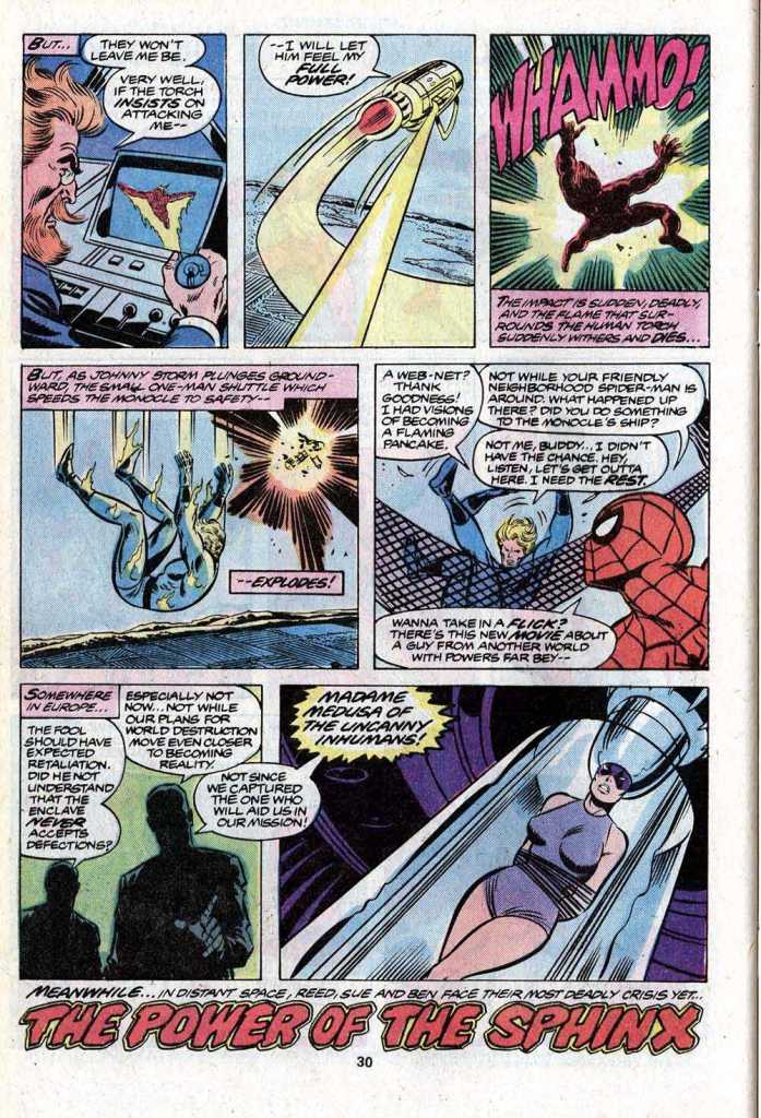 But it’s too little, too late, as the Monocle is able to get to an escape craft and rocket away. Now freed from the mind control, the Torch races after him, but is unable to catch up–that is, until the Monocle’s ship self-destructs, theoretically killing the villain in the blaze. This was all orchestrated by the Enclave, who have dispatched the Monocle for his disloyalty. And as the issue wraps up, we learn that this mysterious organization has captured Medusa of the Inhumans, and intends to use her to accomplish their ultimate goal. Those plans, of course, wouldn’t ever reach fruition, but this was Medusa’s status quo for a couple of years.