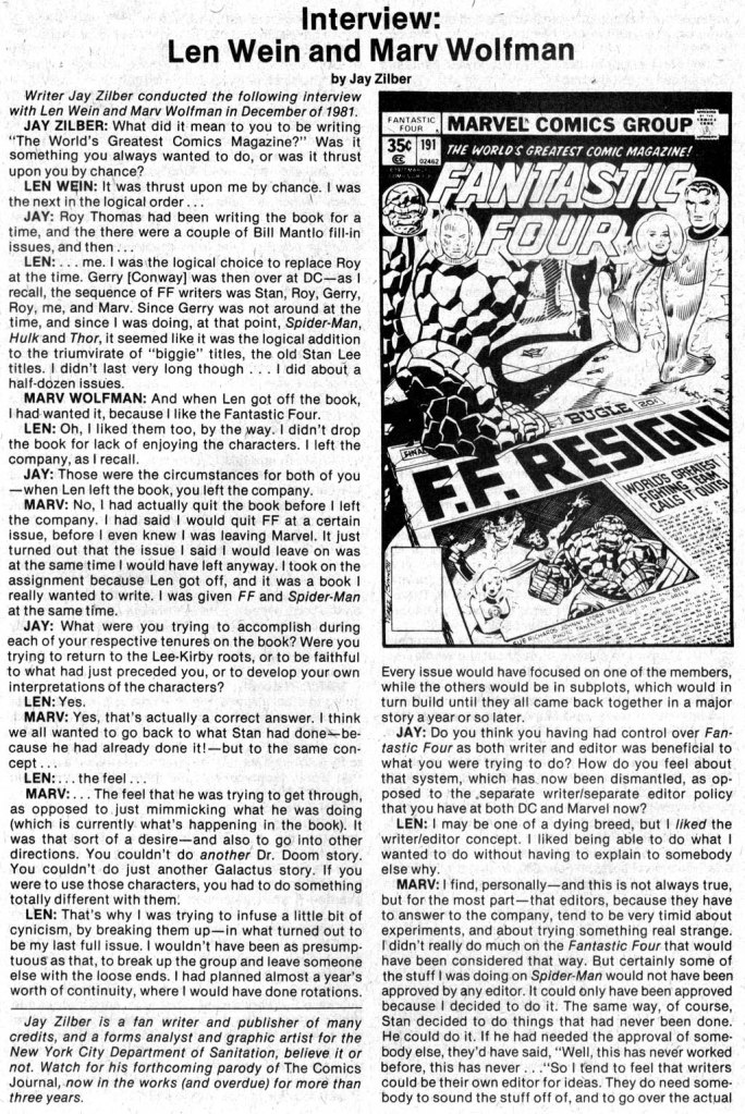 2. It’s interesting how Len Wein and Marv Wolfman perpetuate the “Stan Lee created everything” storyline of Origins of Marvel Comics instead of acknowledging the more collaborative approach of the Marvel method where Jack Kirby and Steve Ditko played a prominent role in creating stories and characters.