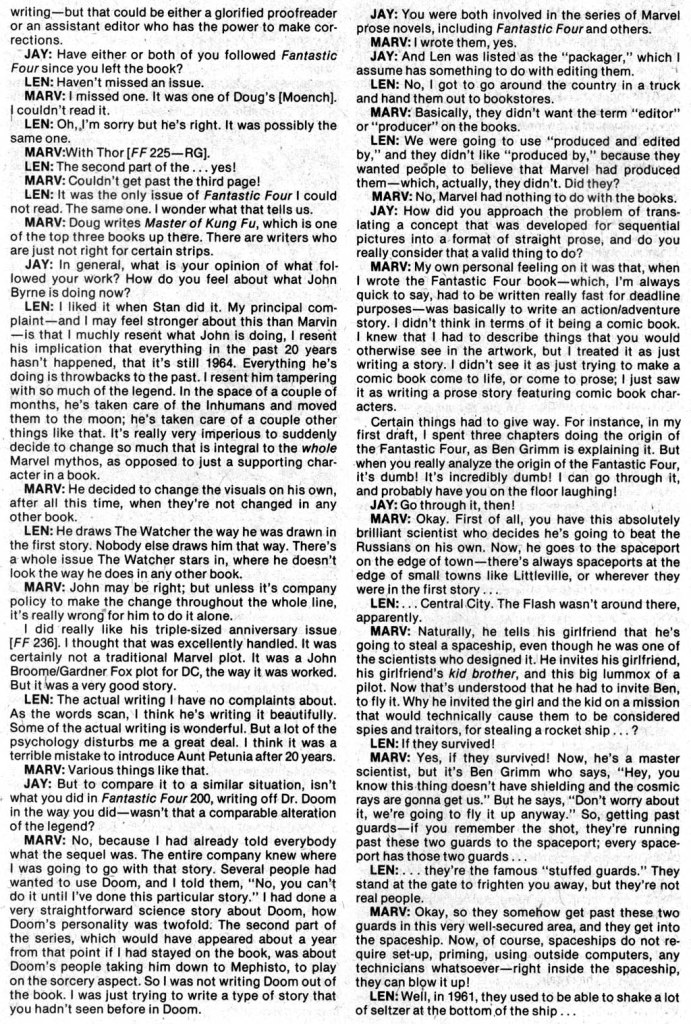 3. Marv says FF#236 ( November 1981 ) wasn’t a traditional Marvel plot, it was a John Broome/Gardner Fox plot for DC. Which part did he think was a DC plot, cause being made to forget they were the Fantastic Four is no different than when he ( Marv ) had the Sphinx make Richard Rider forget he was Nova [ Nova#11 ( July 1977 ) ] or Mesmero making the X-Men forget they were the X-Men [ X-Men#111 ( June 1978 ) script Chris Claremont ].