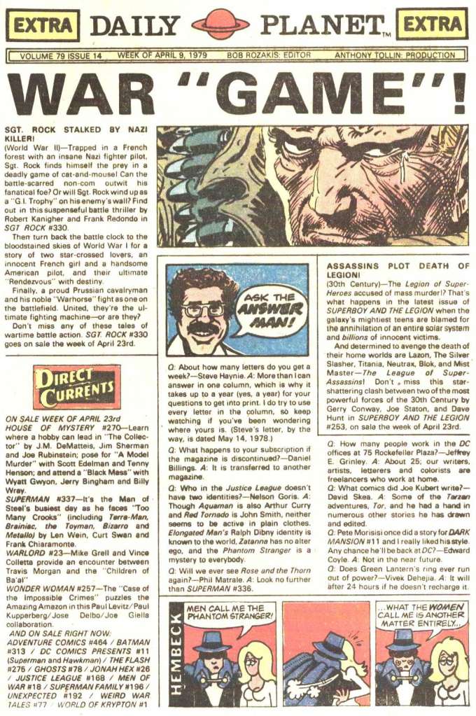 And of course, a new week meant a new edition of the Daily Planet page, DC’s answer to Marvel’s Bullpen Bulletins. As usual, it included an installment of Bob Rozakis’ long-running Ask The answer Man column as well as another goofy comic strip by fan cartoonist Fred Hembeck