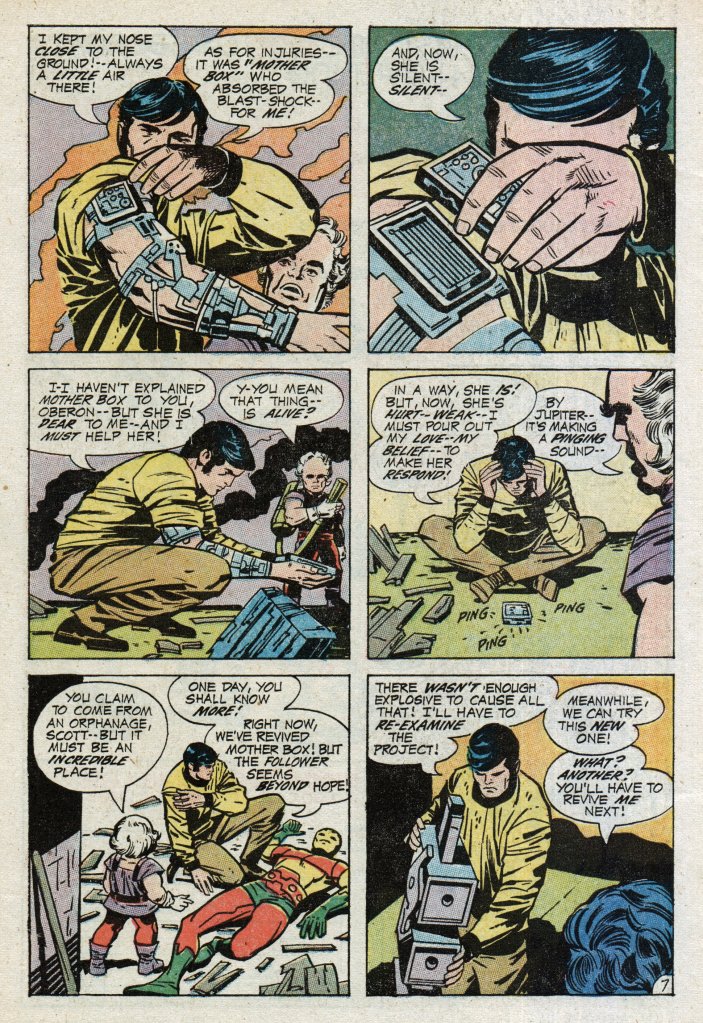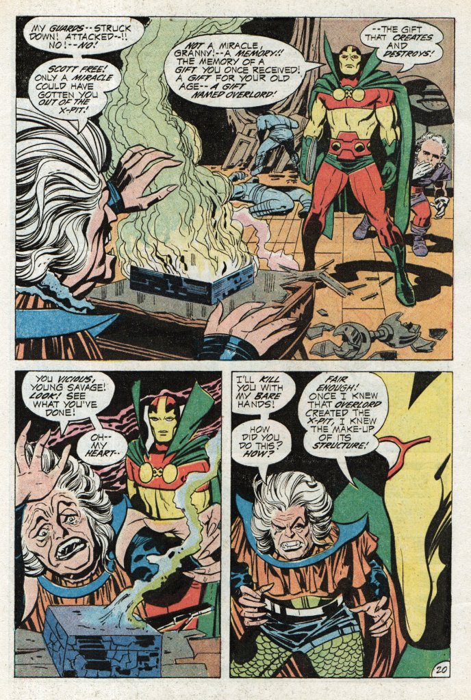 Reading this story without ever having seen issue #1, I assumed that a lot of the elements of it that I had questions about had been answered in the previous issue. But years later, when I eventually got to peruse the first issue, I learned that I was wrong. Most of what I wondered about here, the oblique references that Scott Free made to his past and his upbringing, and his strange array of gadgets and gizmos, were all set up by Kirby as ongoing mysteries that would slowly unravel. I was wrong-footed by this issue as a consequence, but not to the degree that it made me disinterested.