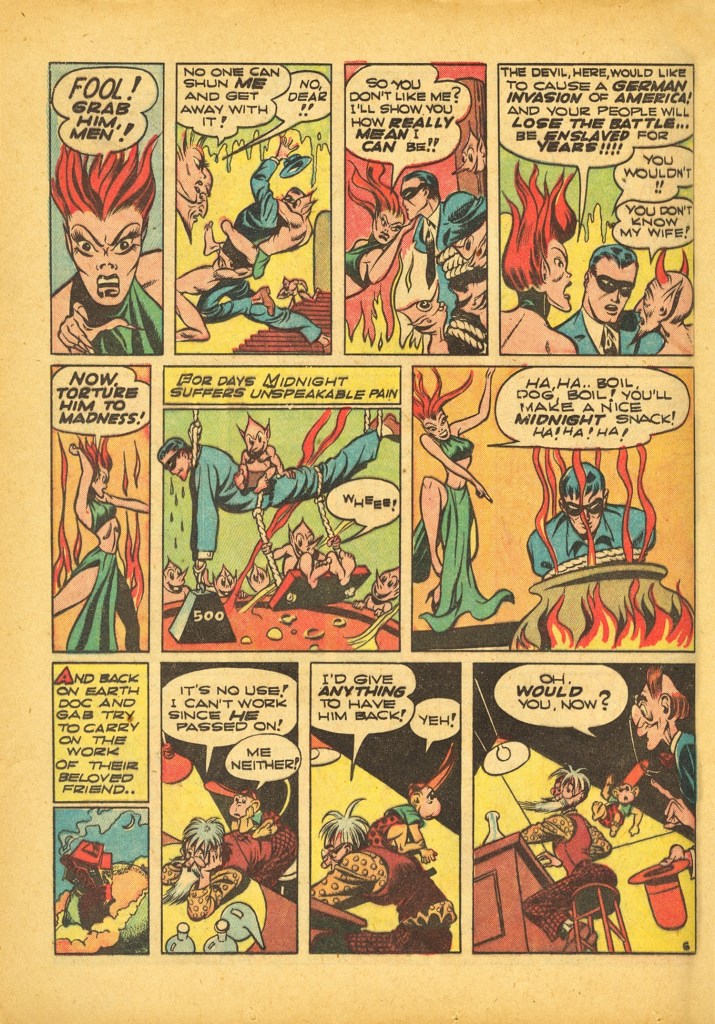 Midnight’s argument to the denizens of the underworld isn’t really all that convincing, but he gets them to work with him to overthrow Satan and the missus and prevent a Nazi invasion of mainland America in the process.