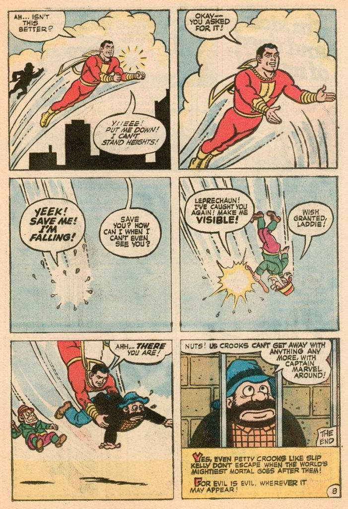 8. The funny thing is, a leprechaun and an invisible thief would have fit write in to the old Captain Marvel Adventures. But yeah, they can’t pull it off here.
