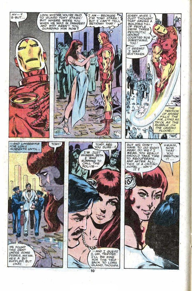 All that said, professional bodyguard Bethany Cabe also holds her own in the fight, and is instrumental of getting Iron man out of the jam he was in at the close of the previous issue. So she’s immediately a more formidable presence as a romantic interest than most we might have seen at Marvel up to this time. This was an era in which the female characters were beginning to get a bit more attention, rather than simply being girlfriends who pined longingly for the hero, who was interested in them but dared not voice that interest. Cabe was a good step forward in this regard, and she consequently made for a much more interesting addition to the cast than many of Stark’s prior girlfriends.