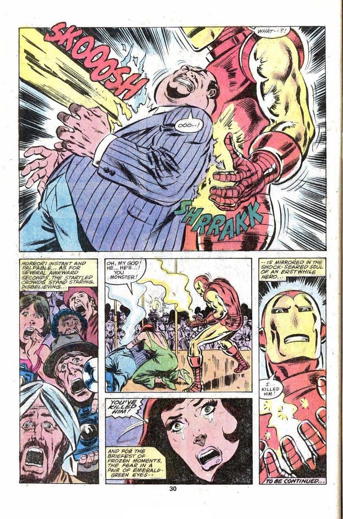 I remember being shocked by this final page the first time I read this issue. It’s about as graphic and violent an image as you were apt to see in a comic book under the auspices of the Comics Code, and it took me as much completely off-guard as Iron Man and the rest of the characters. Triggering Iron Man’s repulsors remotely, Hammer blows a big hole through the chest of the Carnelian ambassador, making it look as though Iron Man himself did the deed. Heck of a cliffhanger–and the letters page told readers that the next issue wouldn’t have Iron Man on the run, accused of murder, but rather something else. So I was interested in seeing what that would be.