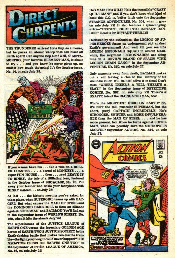 The issue concludes with one of the company’s Direct Currents pages, their equivalent to the Mighty Marvel Checklist spotlighting titles that are about to go on sale. At this moment ,DC was in a period of transition, starting to move to respond to the energy of the Marvel books of the era and updating their approach, however haphazardly. These sorts of teases of long-ago comics were so mysterious and fascinating to me as a kid, earmarking assorted titles and issues that I really wanted to read at some time in the future.