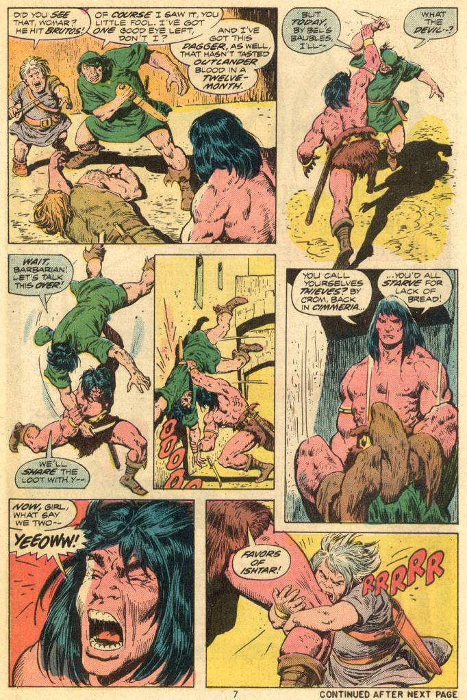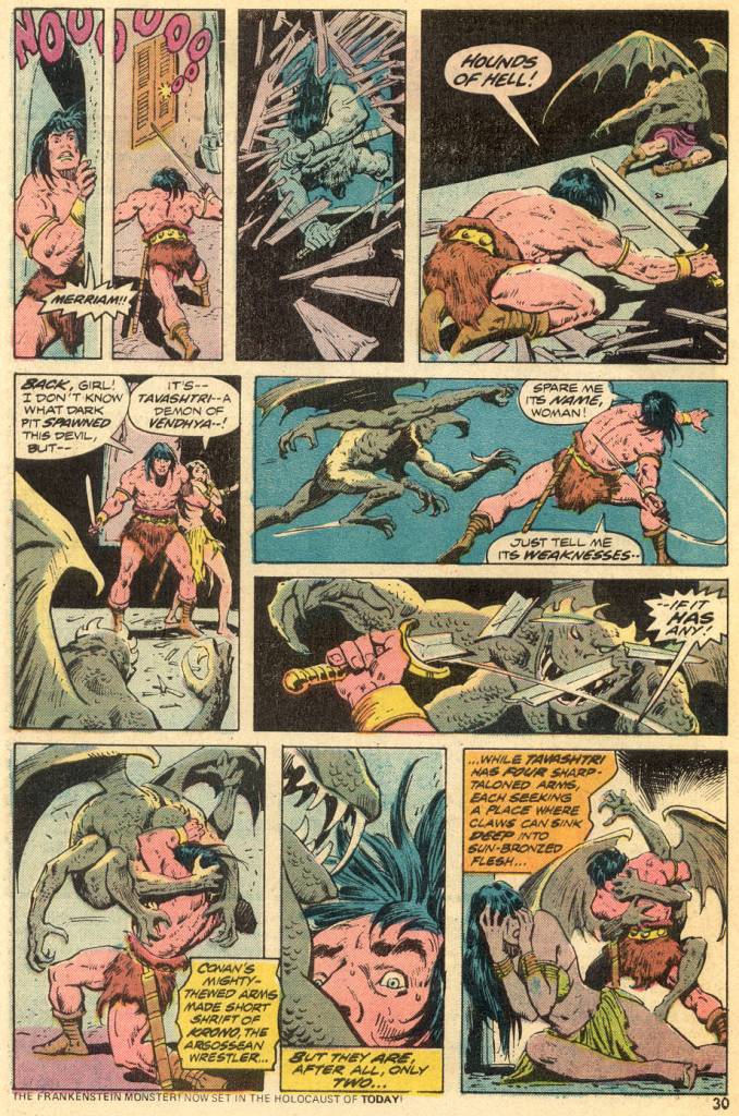 I think Conan in comics of this era has a similar problem to The Punisher – being a character from the “men’s adventure” genre who doesn’t fit well into the constraints of the comics hero. These characters don’t have any code against killing, in fact they aren’t even bothered by the idea of immediately attempting to use deadly force on villians who attack them. This tends to make them be perceived as “bad guys” in a context where a hero is expected never to kill under any circumstances.