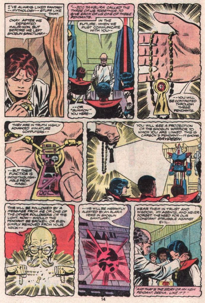 The story this month spotlighted the robot Raydeen, which isn’t all that surprising given that Raydeen’s pilot was the only American among the international cast. Richard Carson was a Hollywood stuntman who was chosen to pilot the behemoth by the Lords of Light thanks to his bravery and professional skill. At this point in the narrative, the three Shogun pilots have dispersed, each returning home separately after their adventures in recent issues. But the ongoing threat of Maur-Konn and his minions of darkness remained a going concern. Still, there was only so long that the three pilots were going to be able to put their personal lives on hold.