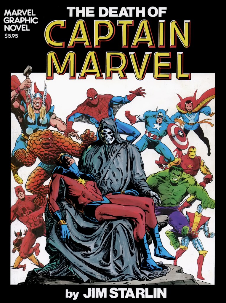 As I posted on my blog a while back, I was just starting to get into comic books in a major way in 1985. I forget what exactly had prompted my nine-year-old self to purchase a copy of The Death of Captain Marvel, but I did. Even though I was totally unfamiliar with the Kree warrior turned cosmic protector Mar-Vell, Jim Starlin had done a superb job of summarizing his life before bringing it to a moving, tragic end in the graphic novel.