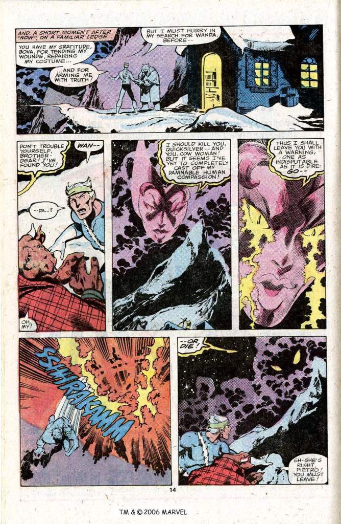 One small correction: Mark (& I, for that matter) didn’t “turn to a story that was going to reinterpret a bunch of past information” etc. It was what we were specifically brought on board to do. Jim had started that ball rolling when he started his Quicksilver/Scarlet Witch subplot, for which (to the best of my knowledge) he didn’t have a conclusion in mind. David inherited it, &, as was fairly common for the time, the longer it dangled the more readers wrote it complaining it was time to wrap it up. David, however, had little interest in pursuing it, &, since he needed some time off… it was decided that the moment to wrap it up… ergo…