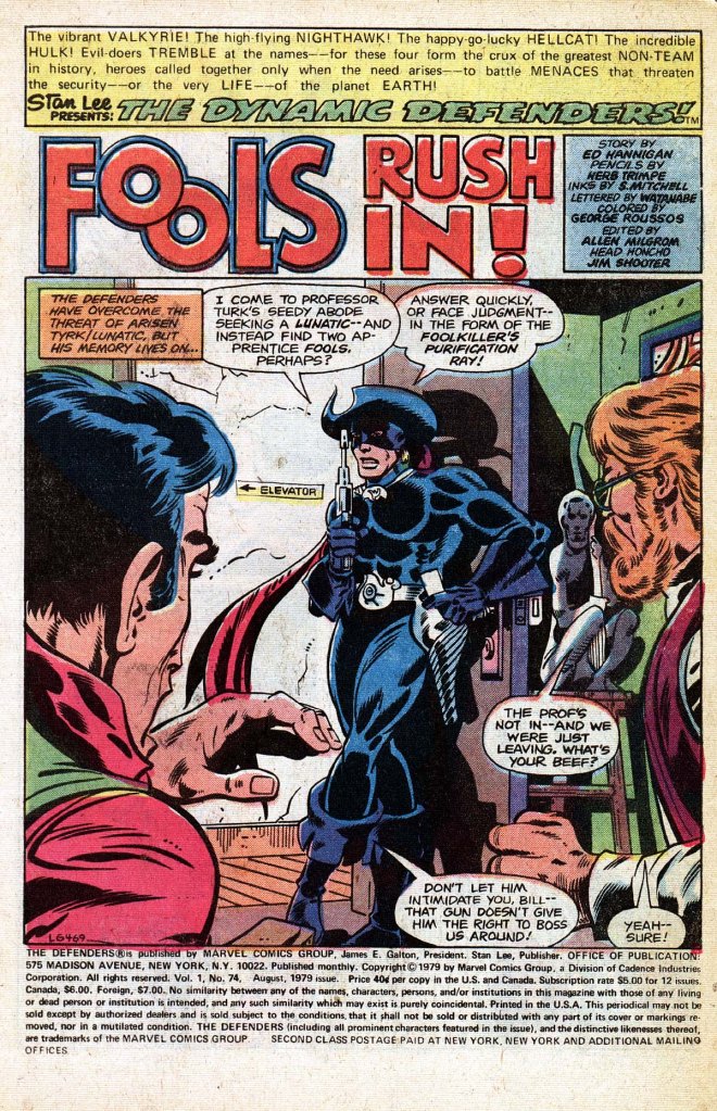 I have a fondness for a lot of Trimpe’s work but I don’t think he was a great fit for The Defenders even though the Hulk was a member. His forte was giant monsters and wild machinery and not interpersonal team dynamics… I don’t think it helped that by the late 70’s his work had become very mannered compared to his work just 5 years previous. The stories weren’t great during this period to boot so I’m not sure how much the art is really to blame.