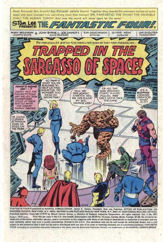 There were plenty of things I didn’t care for in the all Byrne F4 (Sue being a minor when she and Reed first developed feelings for each other, for example) but this run was definitely meh. Byrne did better with austin’s overwhelming inks than fared with Sinnott, whose inking made everything look the same, just with different layouts. Hunt was my favorite Byrne inker by far. I also don’t think Wolfman ever really clicked with this book. There’s no genius inspiration like with New Teen Titans and even Spider-Woman was electric and fun unlike his F4. Wolfman never fell below a high level of quality but F4 was the bottom of his successes.