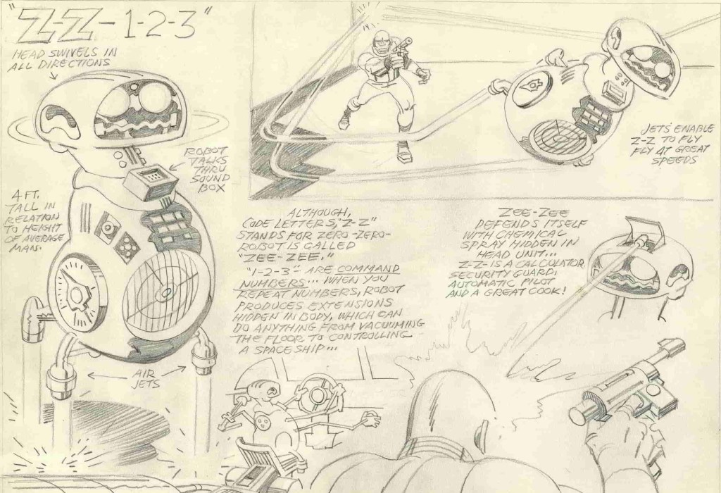 Z-Z-1-2-3, had Jack Kirby gone with ZZ-123 he would have beaten Star Wars: The Force Awakens ( 2015 ) to a similar named BB-8.