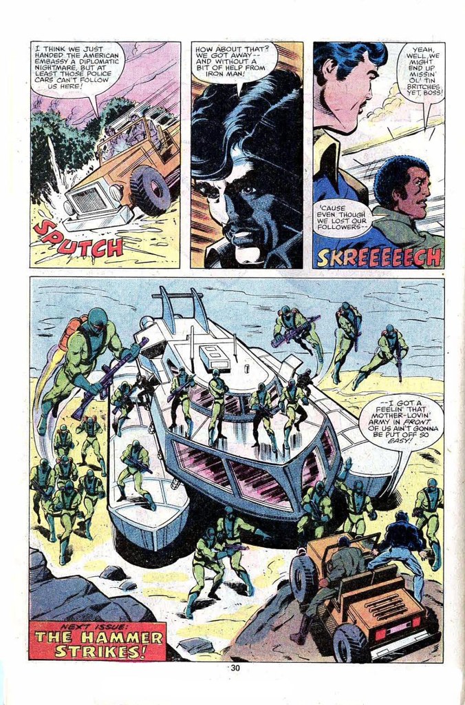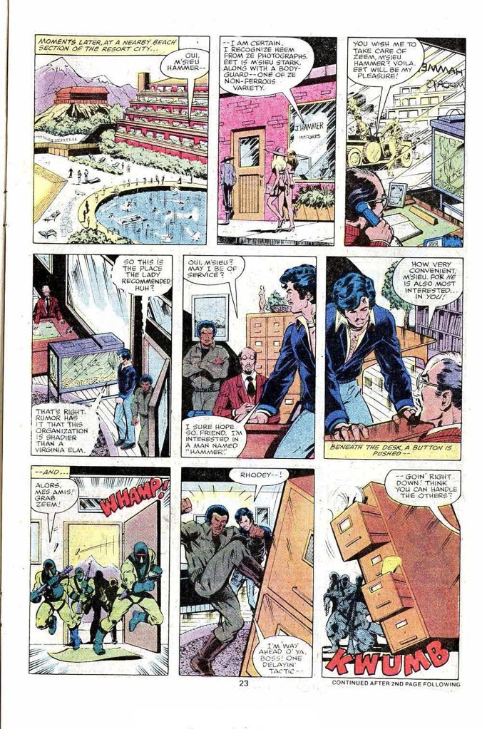 Rhodey and Tony race off in their jeep, with Hammer’s men in close pursuit. In order to elude them, Rhodey jumps the jeep off the pier they’re on and onto the sandy beaches, which causes them to elude their pursuers. The pair is feeling pretty happy about their success without the need for Iron Man’s help–when they crest a hillside to be confronted by a veritable battalion of similarly-attired Hammer goons coming ashore from a landing craft. It’s readily apparent that the two men aren’t going to be eluding capture quite so easily. And that’s where this issue is To Be Continued! It was a fun, breezy read that ended almost too quickly, which wasn’t something that was typically said about IRON MAN only a year earlier. So this was definitely a title on a noticeable upswing.