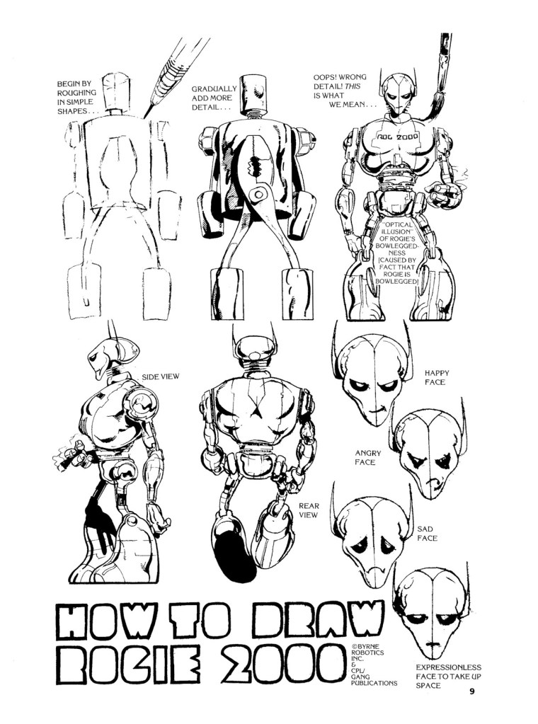 ROG 2000 had been a creation of Byrne’s in the final days of his time as a fan. The character had first appeared in a self-referential story in the pages of CONTEMPORARY PICTORIAL LITERATURE, a fanzine put out by a collective of fans most of whom would wind up working in the field in a short while. The joke of ROG 2000 was that there were two other members of the group named Roger–Roger Stern and Roger Slifer–and so Byrne wound up doing a spot illustration of a futuristic robot ROG that swiftly evolved into the mascot of the publication. The first actual story featuring the character had appeared in CONTEMPORARY PICTORIAL LITERATURE #11 and was written by Stern and inked by Bob Layton. The whole thing was simply a collection of jokes at the expense of the fanzine’s assorted contributors, all of whom appeared in the strip, as did Duffy Vohland, who had started working up at Marvel.