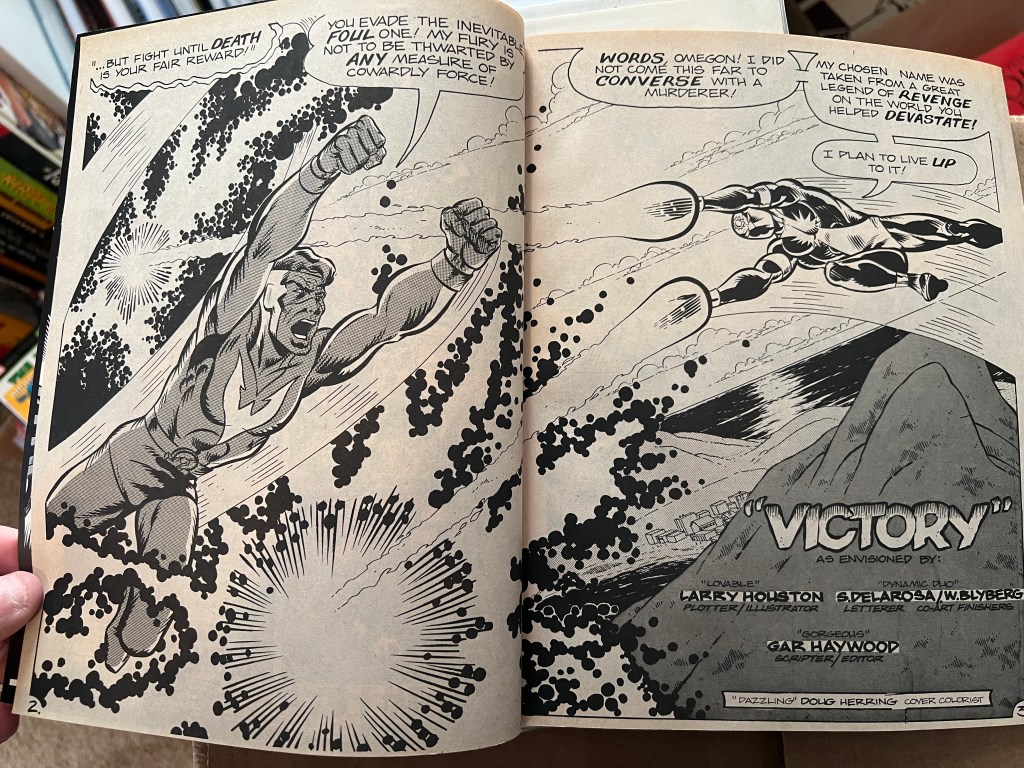 Though it was only released a few months after issue #2, the artwork in this third issue takes a substantial leap forward. Mostly this seems to be down to the inking, which was now being handled tag-team by Sam De la Rosa and Will Blyberg, both of whom would shortly enter the field as respected professionals. Penciler Larry Houston’s storytelling and dynamics were still on point, and he channeled the spirit of Lee and Kirby in his stories. But now the finished product looked a bit sharper and more professional as well. The scripting was now being handled by Gar Haywood, who had previously functioned solely as the strip’s editor (and letterer in issue #2–the lettering was something else that looked a lot stronger this time out.)