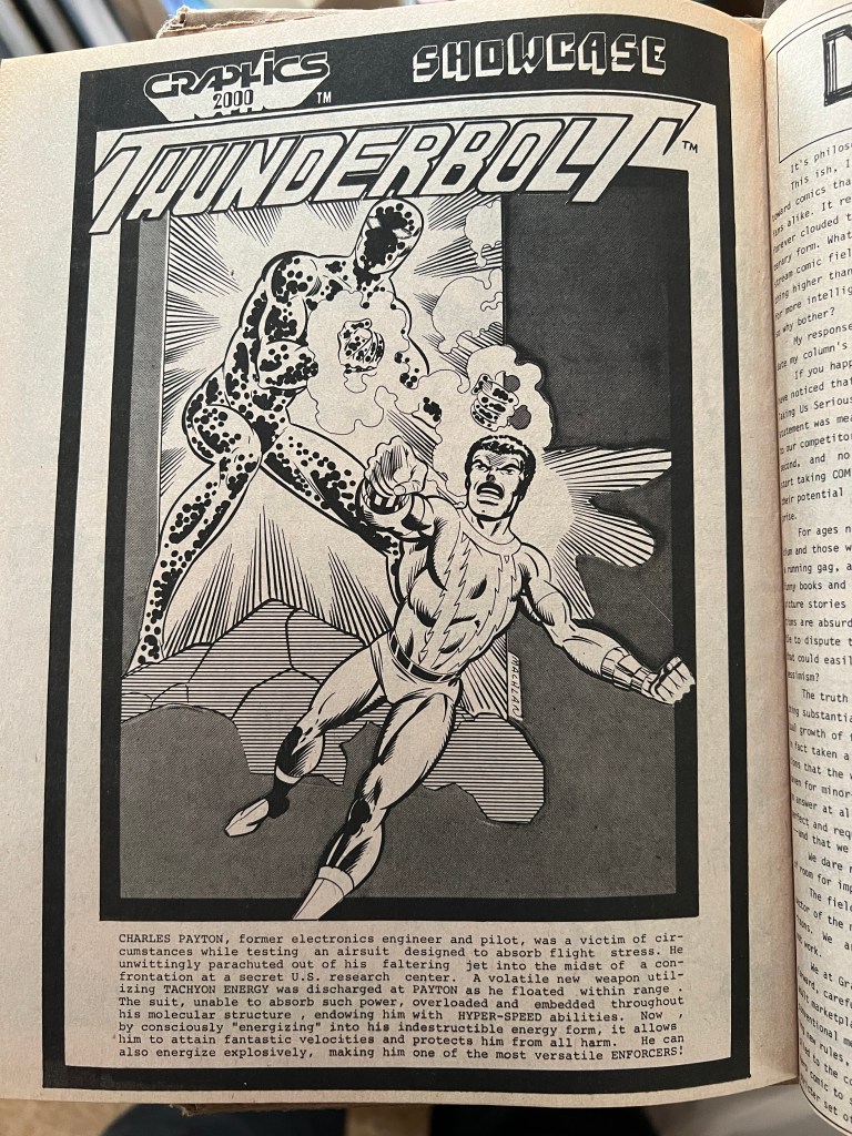 There was a real sense in this issue, as there had been in the previous one, of their being a larger mythos and world behind these characters. This issue included a couple of quasi-pin-up write-ups concerning the individual heroes and their origins and backstories, such as this one by Mike Machlan spotlighting Thunderbolt. This all served to convince me that there must be other releases out there somewhere that I needed to track down. Instead, it was simply the result of the creativity and imagination of Larry Houston and his friends in coming up with these characters.