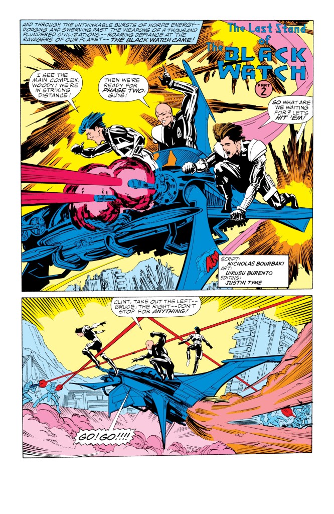 Blame it on John Byrne for killing off Guardian! Or Conway and Romita for Gwen Stacy’s fate! But while I found the concept of “Strikeforce: Morituri” quite intriguing, I was afraid that I would actually like and care about these characters who weren’t going to stick around. As a result, I deliberately skipped this one.