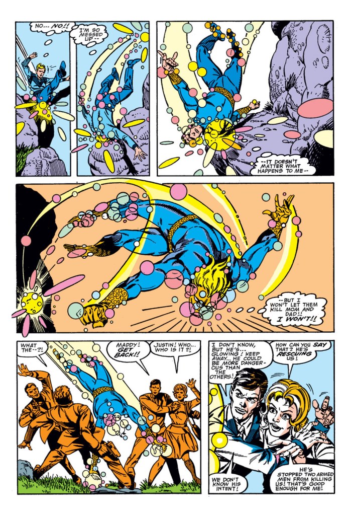 In his role as Marvel’s Executive Editor, Tom DeFalco had been tasked by Jim Shooter with coming up with concepts for the company’s anniversary celebration launch of the New Universe, and DeFalco threw himself into the task. Tom saw the value in creating a new line of comics that would put an emphasis back on the feeder system of the mainstream newsstand marketplace (an environment in which Marvel dominated throughout the 1980s) and which might allow for the sort of self-contained storytelling that had been a hallmark both of the early marvel days, when most stories were complete in a single issue, and over at Archie Comics, where DeFalco had first begun working in the field. He envisioned a super hero book in the mold of the early Spider-Man, one that would feature a likable teenage protagonist who would have super-powers thrust upon him and who would have to navigate the complications that they created in his life. DeFalco nicknamed his prospective new hero the Blue Bouncer, a reflection of the manner in which he saw the character moving, Spider-Man-like, bouncing from surface to surface.