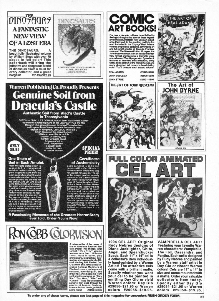 As with all of Warren’s publications, THE GOBLIN was packed with ads for merchandise from his Captain Company subsidiary, which offered a broad collection of genre-related junk for sale, including back issues of his own magazines and a wide variety of toys and books and tchotchkes from all over the place. There was stuff in these ads that always looked cool or at least interesting, but something about their presentation also made the entire venture seem sleezy and not to be trusted. While I might have been interested in ordering some of the items offered if I had the cash (which I almost never did after having bought that week’s comics) I couldn’t quite get behind sending my money to an outfit that presented itself in this fashion. Simpler to just burn it, I figured.