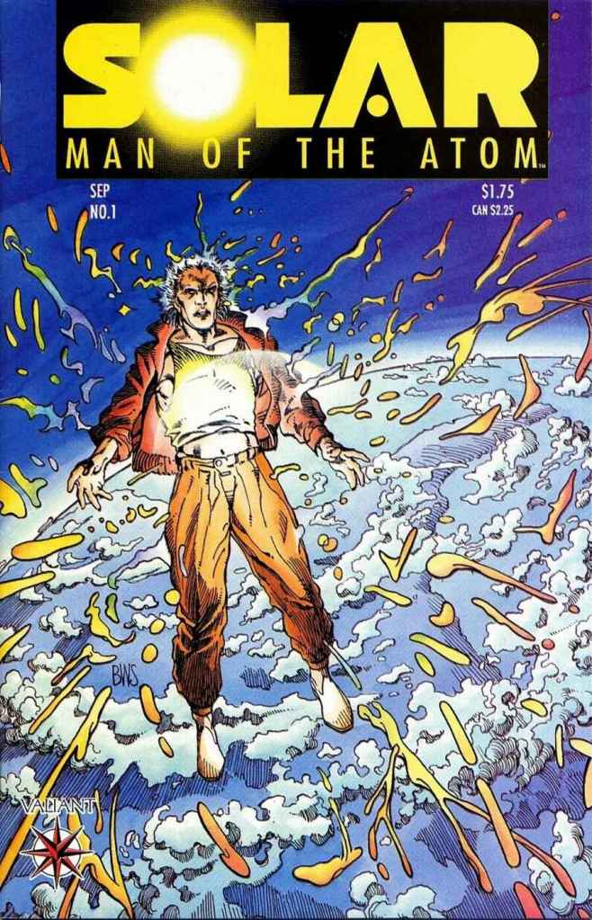 The second super hero title in Valiant’s new line of books was SOLAR, MAN OF THE ATOM #1. Like MAGNUS, ROBOT FIGHTER, the series was a revival of a property that had been published in the 1960s and 1970s by Gold Key: DOCTOR SOLAR, MAN OF THE ATOM. But unlike MAGNUS, SOLAR wasn’t set up as a continuation of that earlier series. Instead, its lead character, Dr. Phil Seleski, had read the Gold Key comics when he was a kid, and so when he experiences an accident in a similar manner to that earlier Doctor Solar, he is inspired to adopt his own version of that comic book character’s name and costume for his own. In this respect, the approach was similar to the way in which the silver Age Flash was in part inspired by reading the exploits of his golden age counterpart.